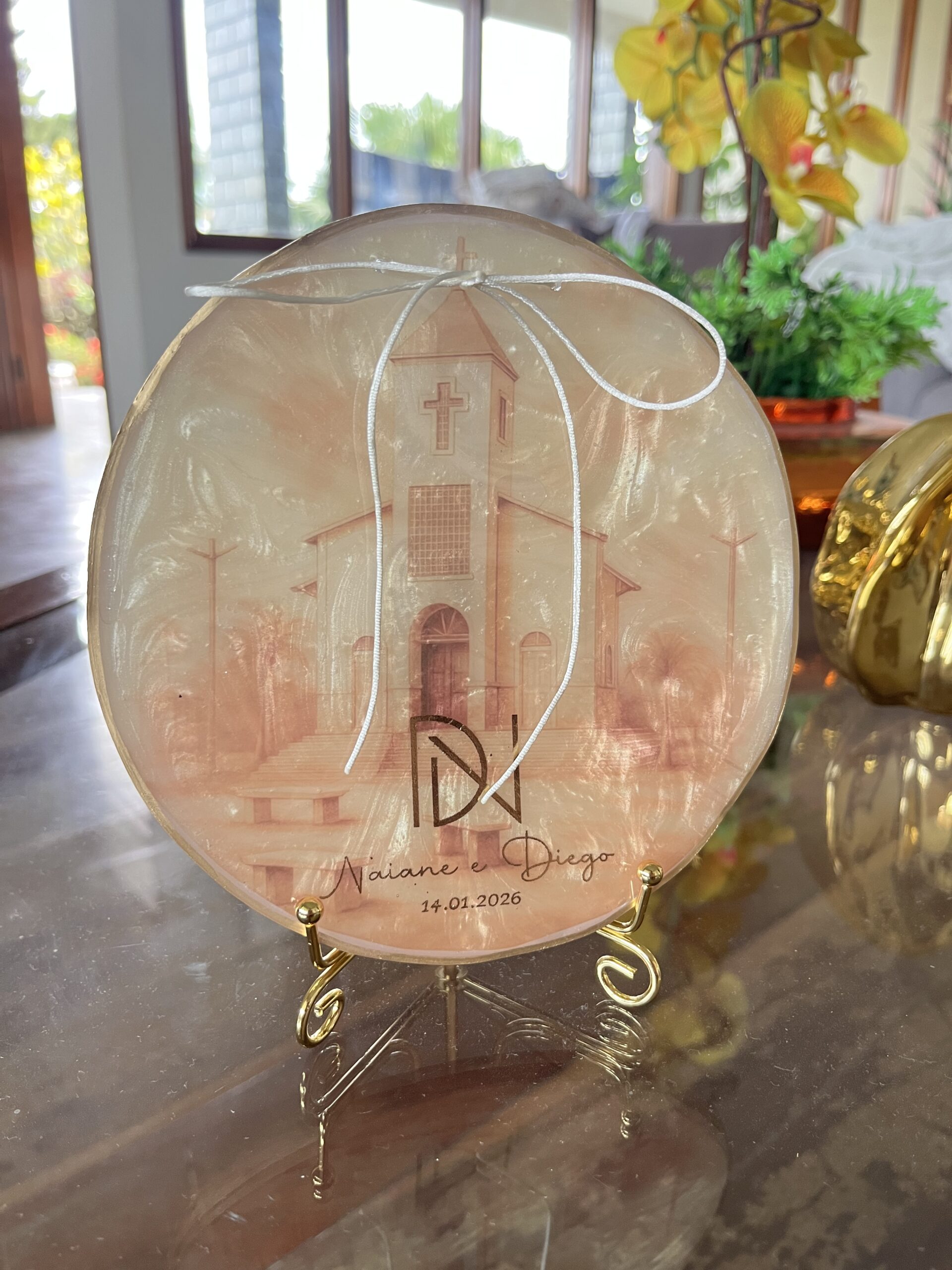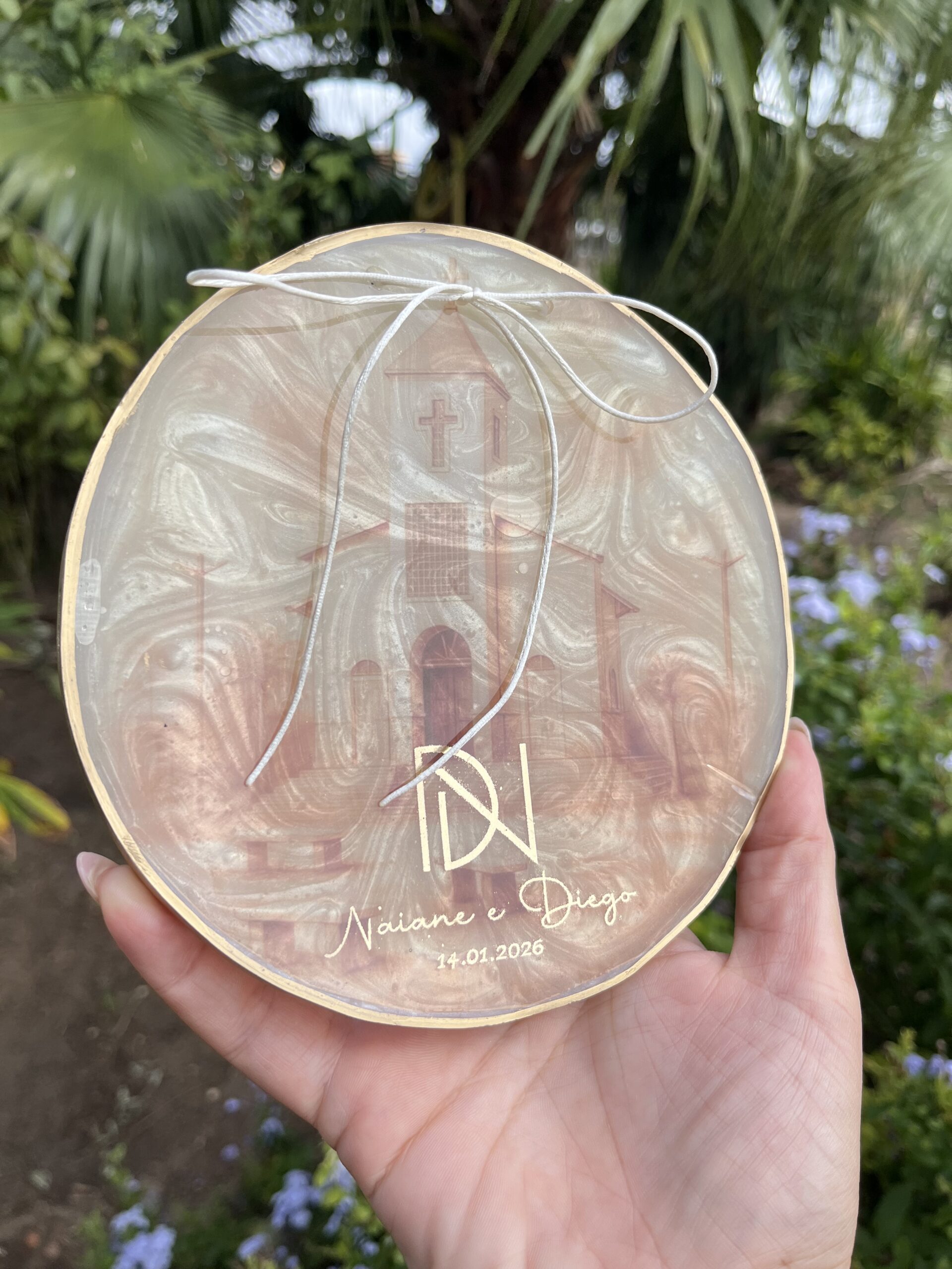 Nosso porta-aliança em resina é feito artesanalmente, com acabamento delicado e design exclusivo, pensado para valorizar cada instante do seu “sim”.