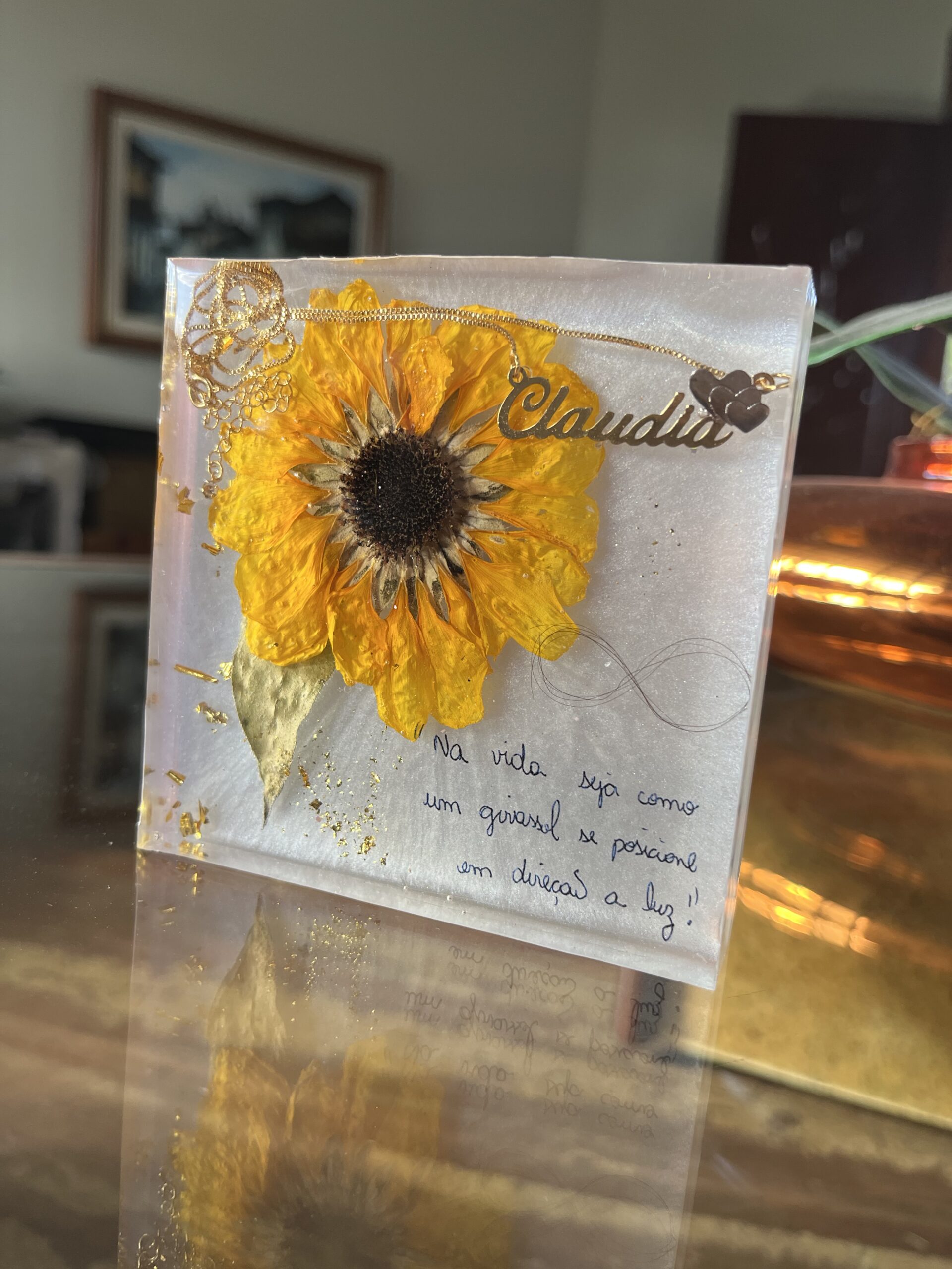Após a compra, entraremos em contato para definir juntos a personalização e orientar sobre o envio das flores que serão eternizadas com todo o cuidado e carinho.